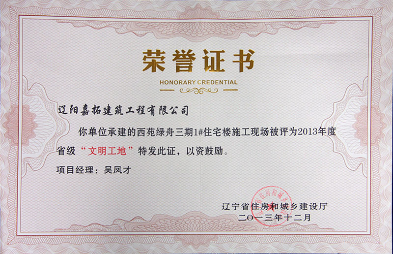 2013年度遼寧省建筑業(yè)優(yōu)秀信用企業(yè)