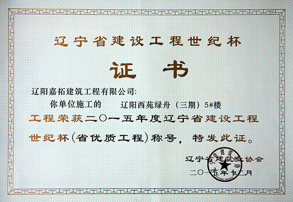 • 2015年遼寧省建設工程世紀杯(企業獎)